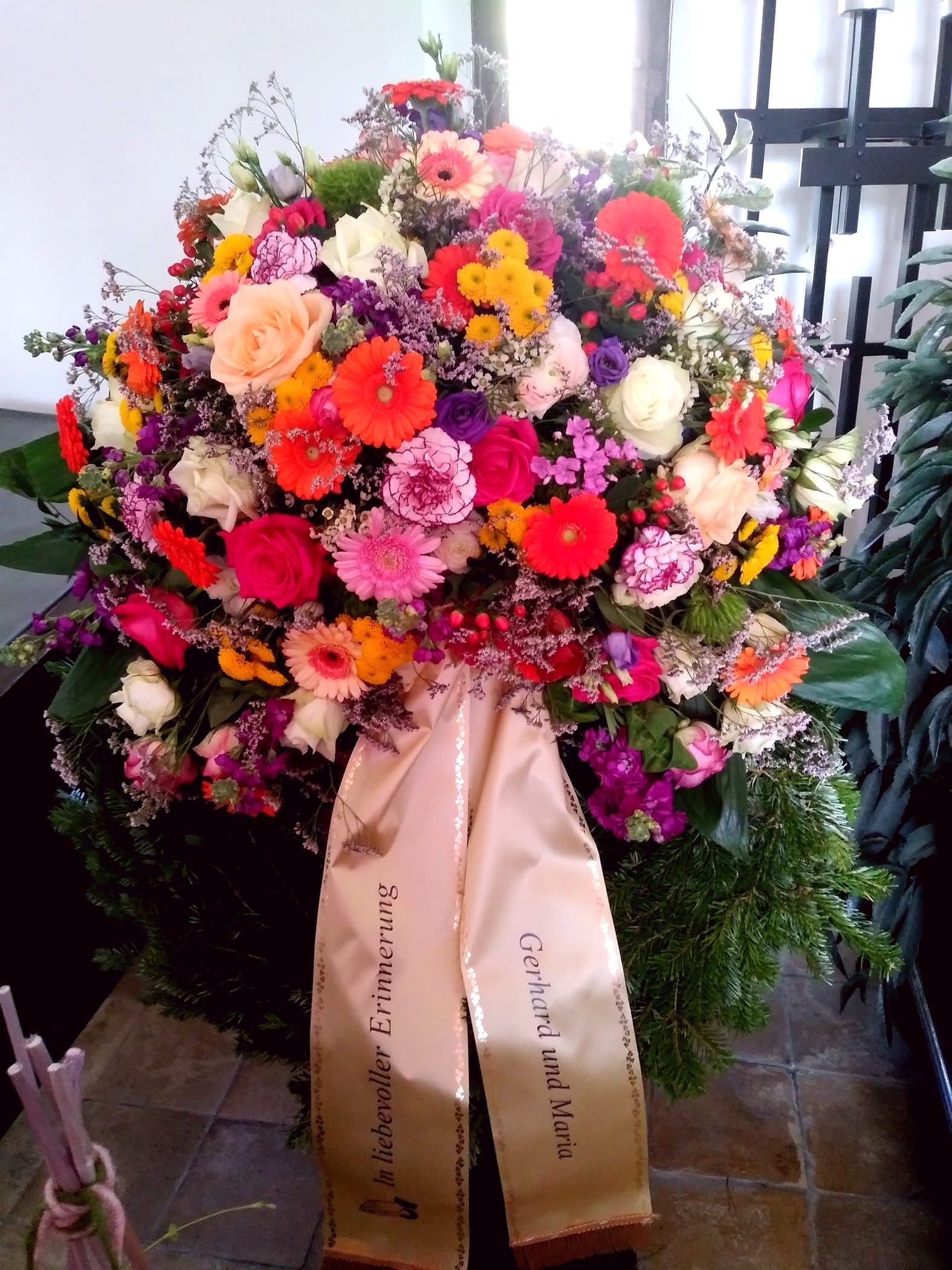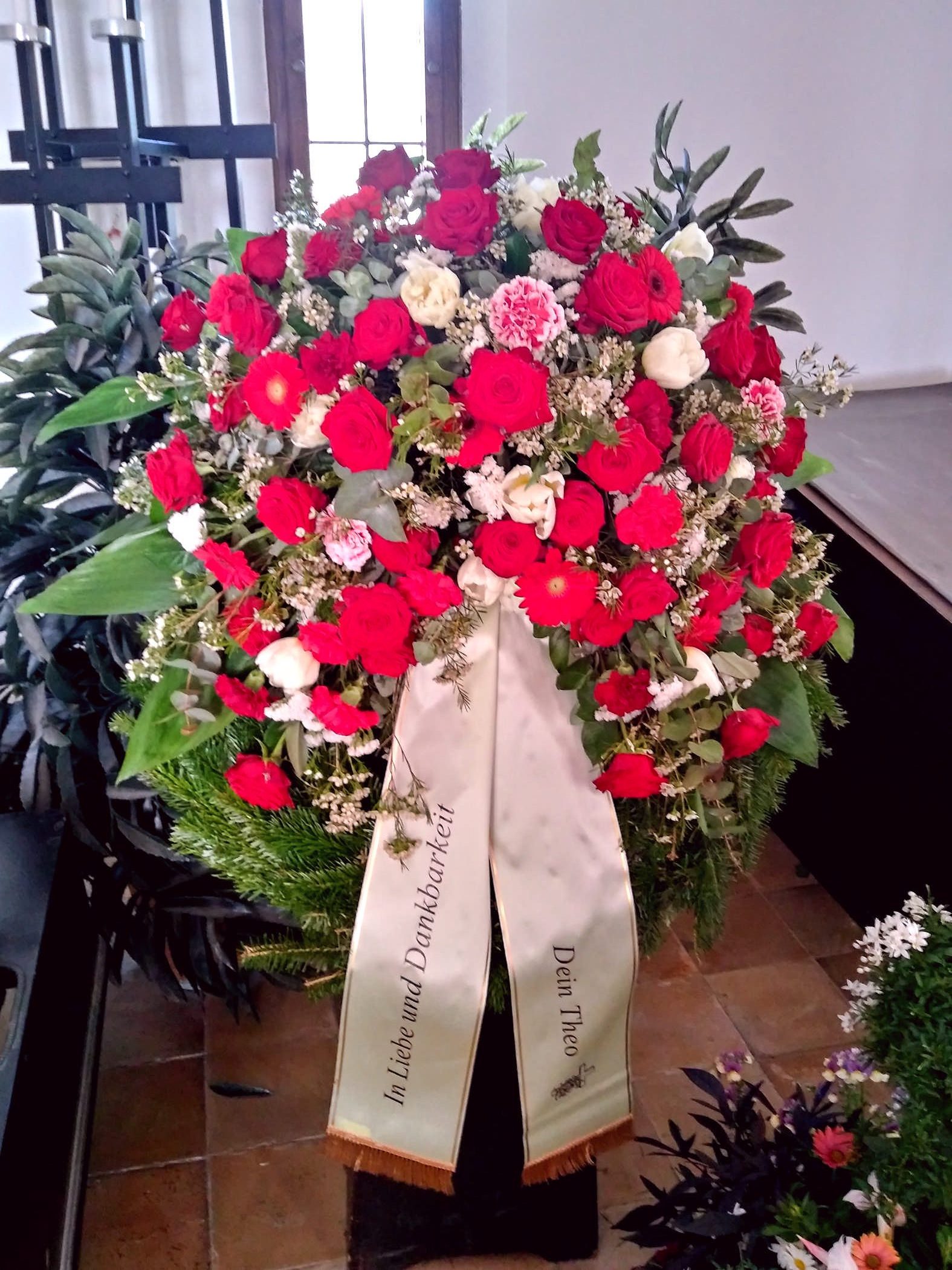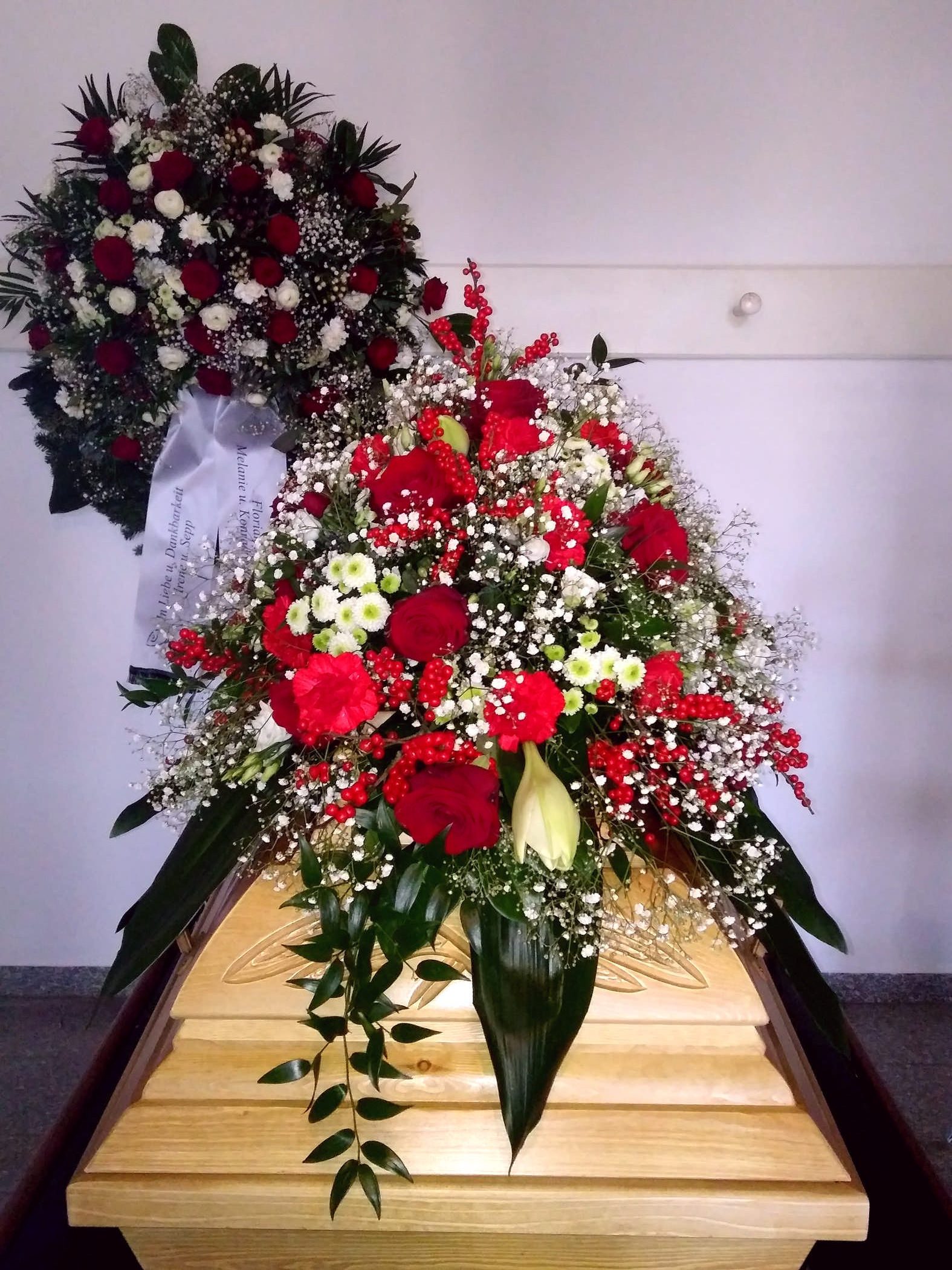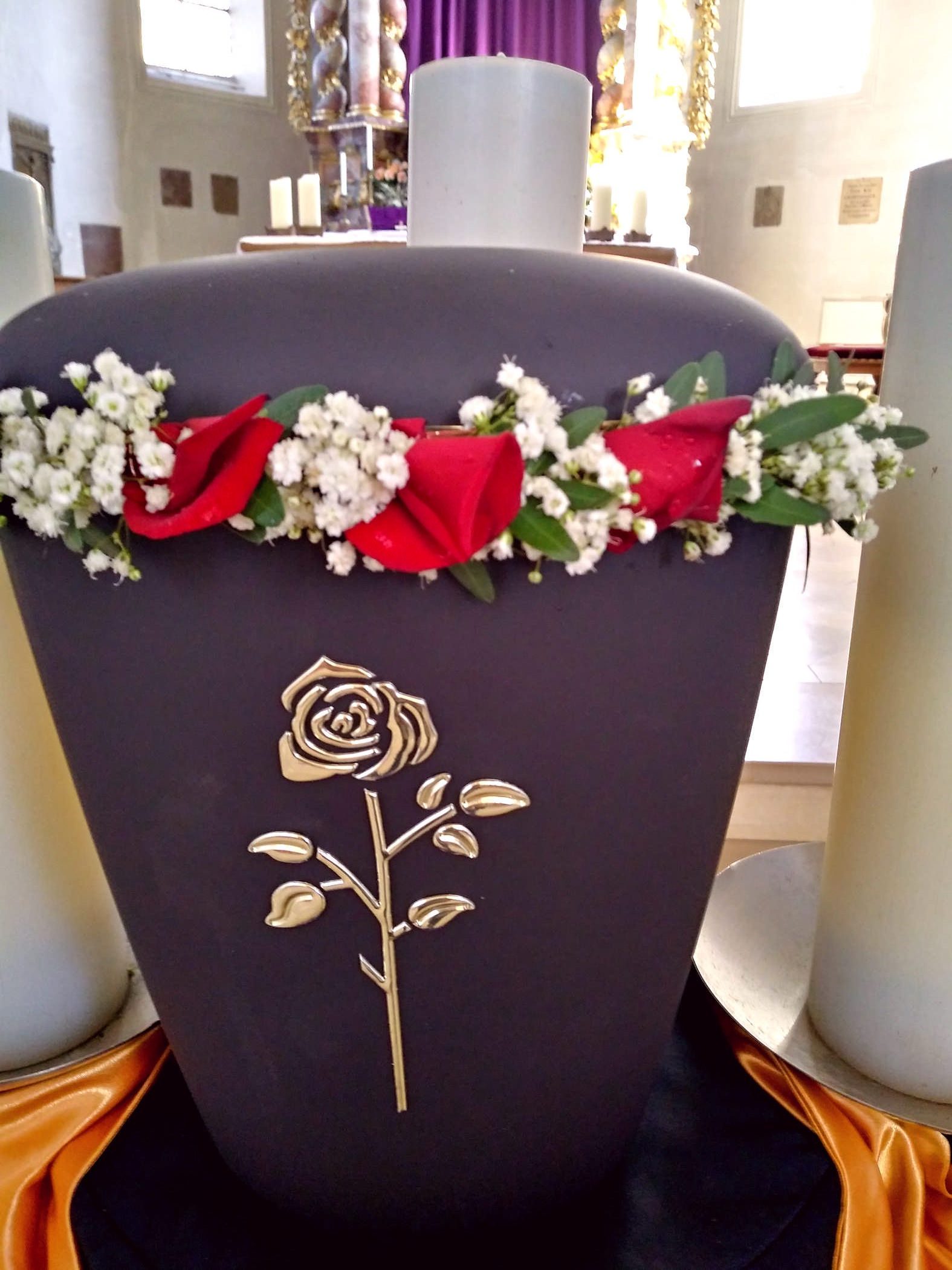 Egal ob Trauerkranz, Sargbukett, Herzen, Gesteck, Pflanzschalen, Urnenkranz oder Urnenschmuck und eine passende Trauerschleife. Rufen Sie uns einfach an wir stehen Ihnen zur Seite.