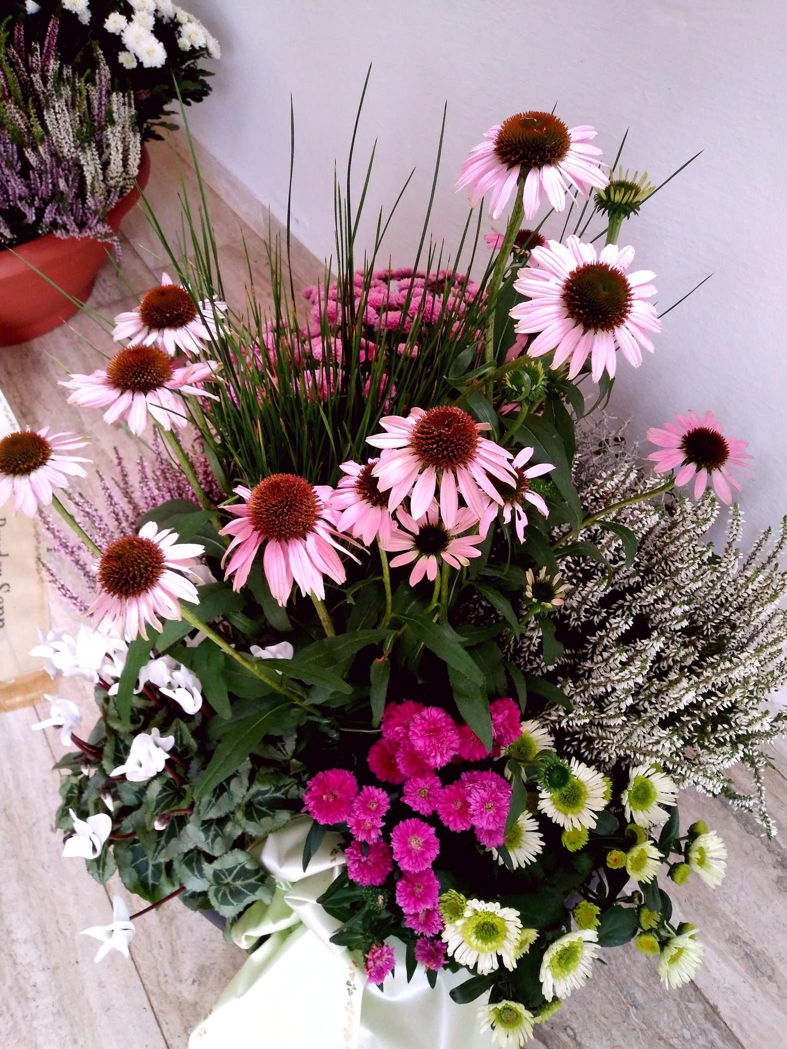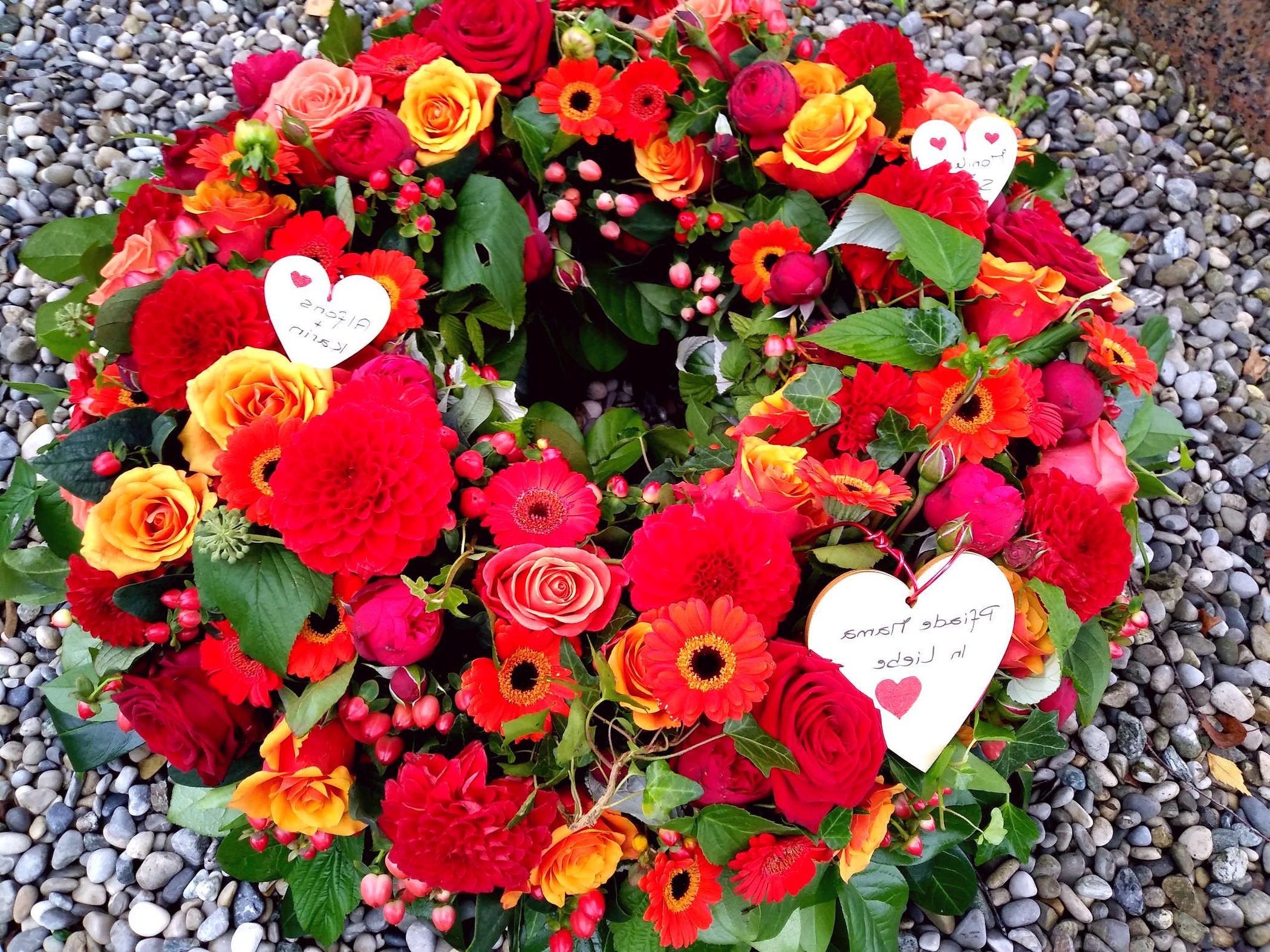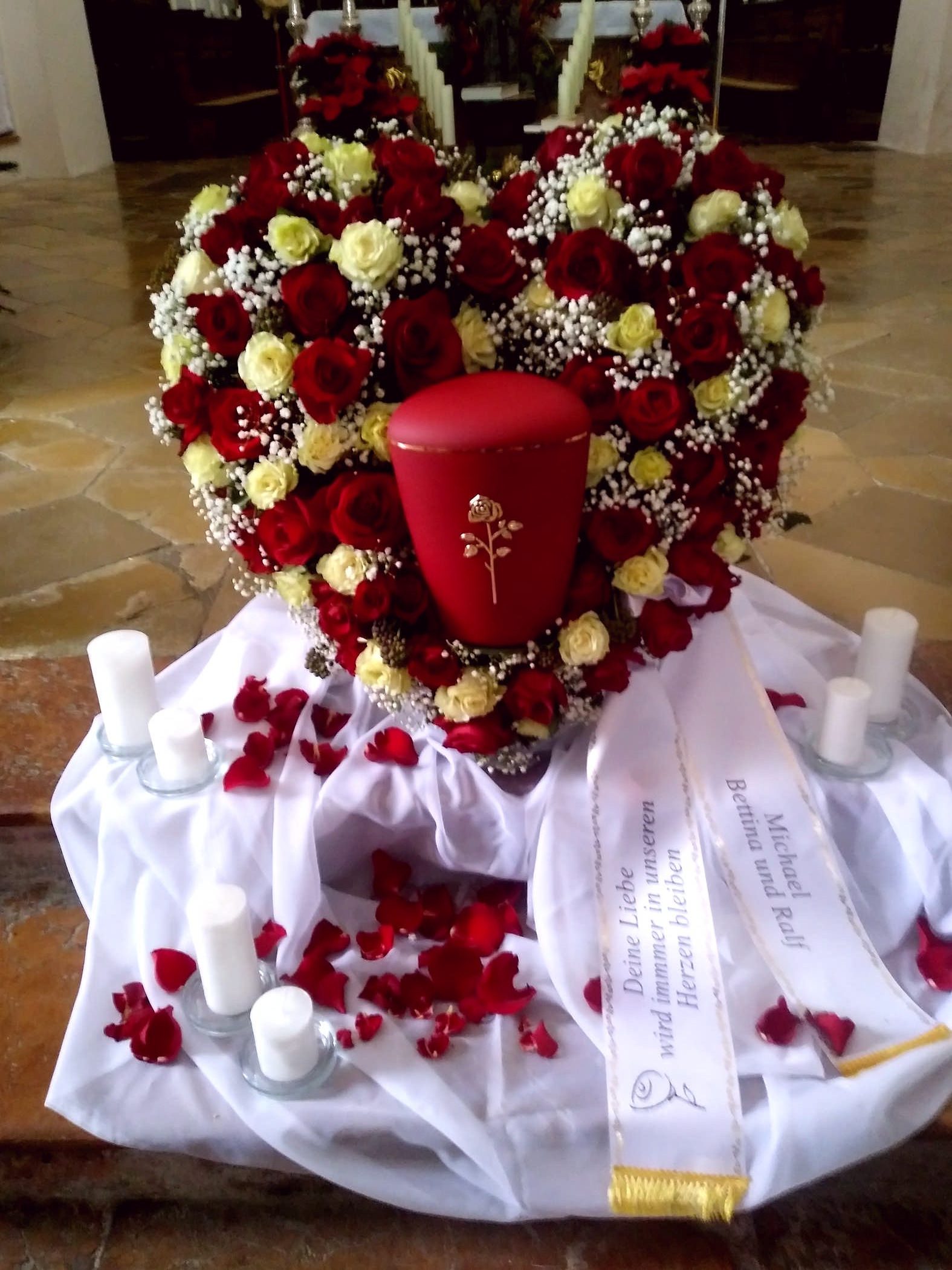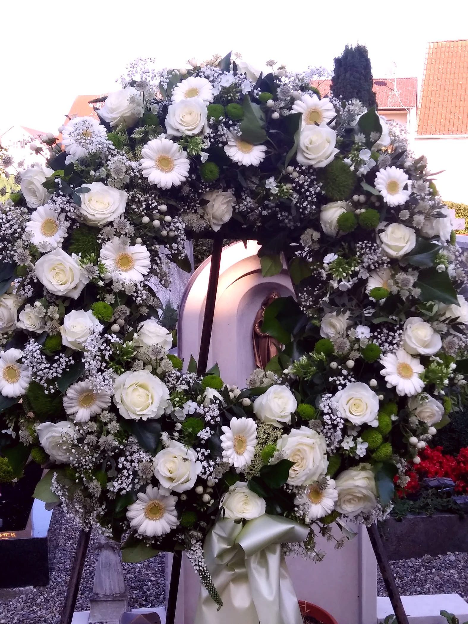 Egal ob Trauerkranz, Sargbukett, Herzen, Gesteck, Pflanzschalen, Urnenkranz oder Urnenschmuck und eine passende Trauerschleife. Rufen Sie uns einfach an wir stehen Ihnen zur Seite.